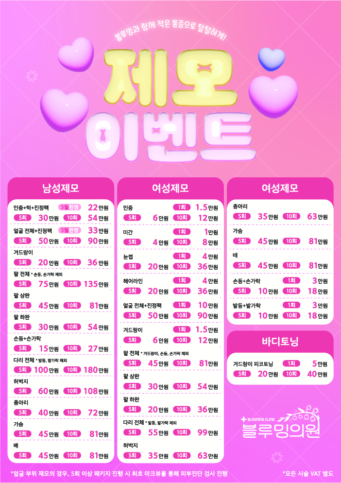 여성제모 / 남성제모 3~4주마다 시술